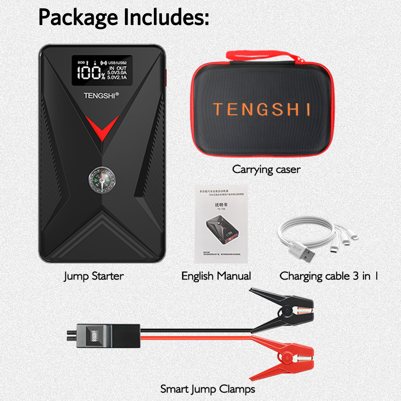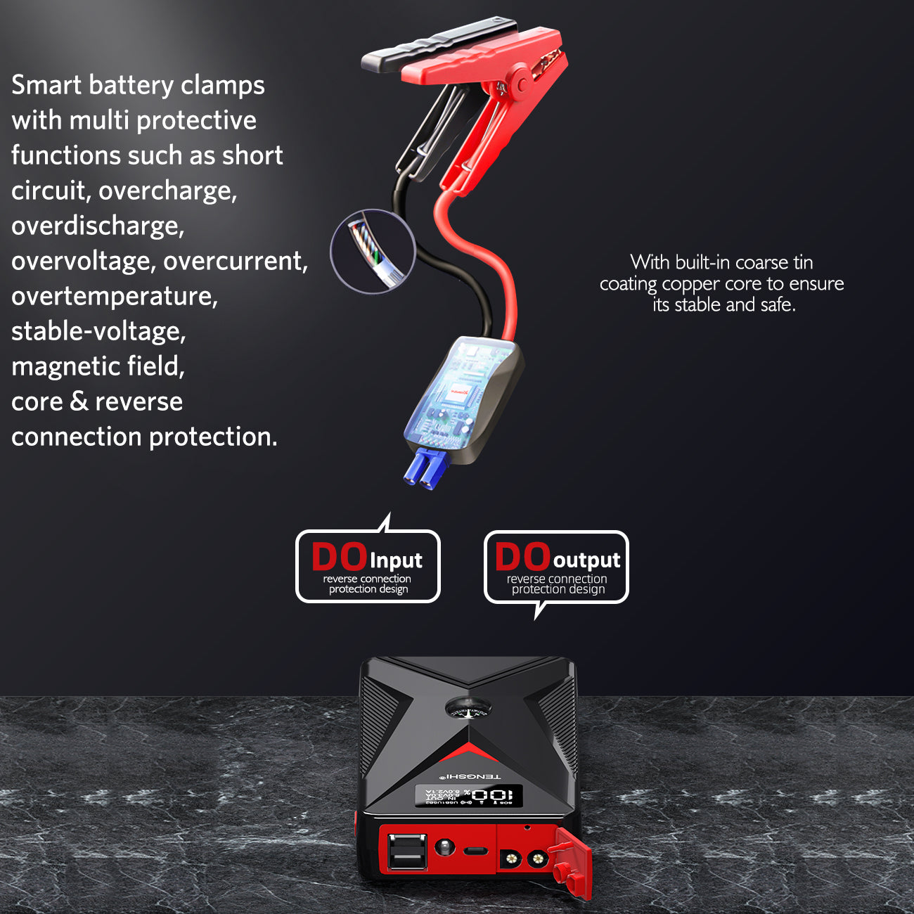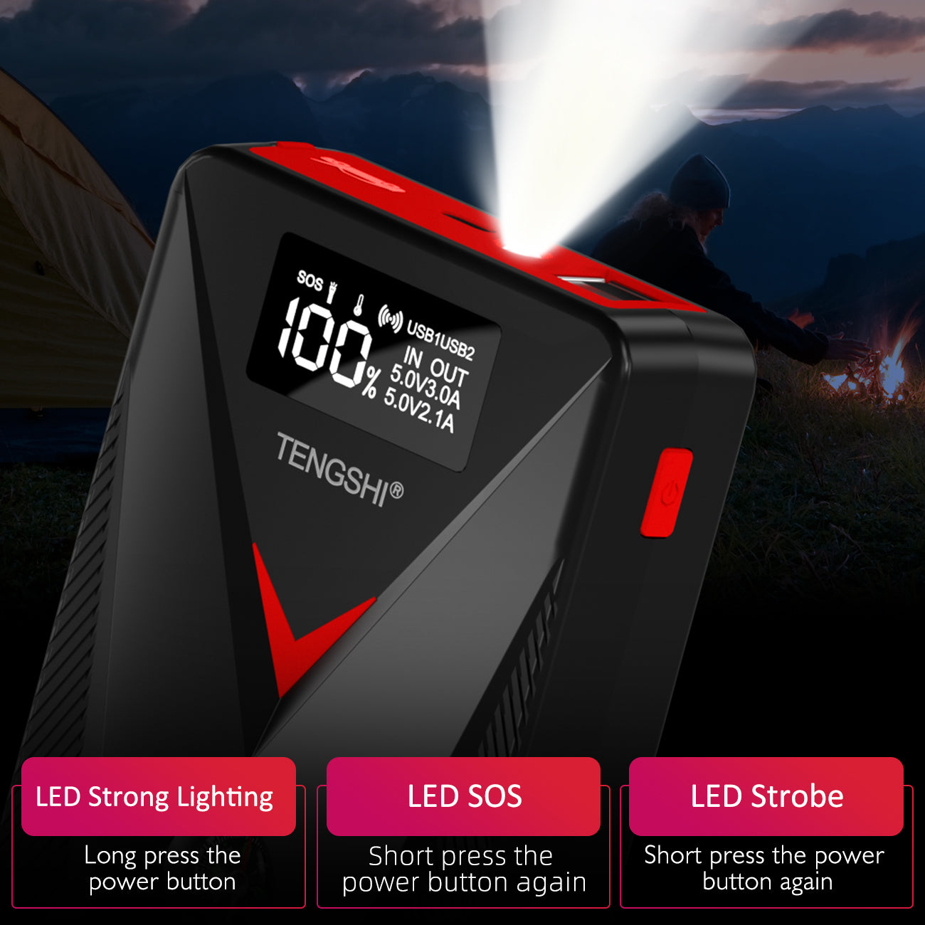 安全便携12V车载汽车应急启动电源搭火过江龙零下-30℃极寒启动充电宝+LED灯过压保护适用所有汽油车